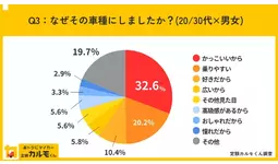 続いて、なぜその車種を選んだのか理由を聞いたところ、最も多かったのは「かっこいいから」で32.6%でした。具体的には「大人っぽいから」「SUVでかっこいいから」といった理由が挙げられました。多かったは「乗りやすい」で20.2%でした。「安定感があるから」「運転しやすいから」といった意見が多く、普段乗り慣れている車でドライブデートしたいと考えている人が多いようです。世代別でみても、上位の理由に大きな差はみられませんでした。
