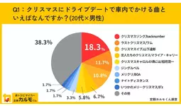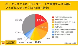 クリスマスにドライブデートで車内でかけたい曲について聞いたところ、1位は「クリスマスソング/backnumber」で17.6%でした。続いて2位は「ラストクリスマス/ワム」で13.1%、3位は「恋人たちのクリスマス/マライア・キャリー」で11.8%でした。