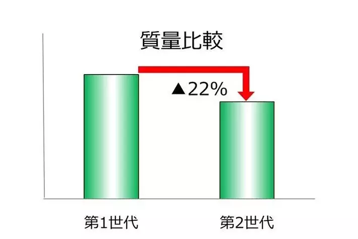 各種部品設計を見直し、小型・軽量化。第1世代比▲約22%の軽量化を達成し、環境負荷低減に貢献