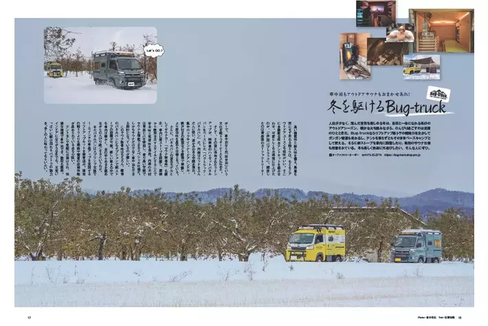 軽トラキャンプ&荷台泊のパイオニア、カーファクトリーターボー(青森県)が製作したバグトラック。荷台にはナント、サウナを装備しているのです。