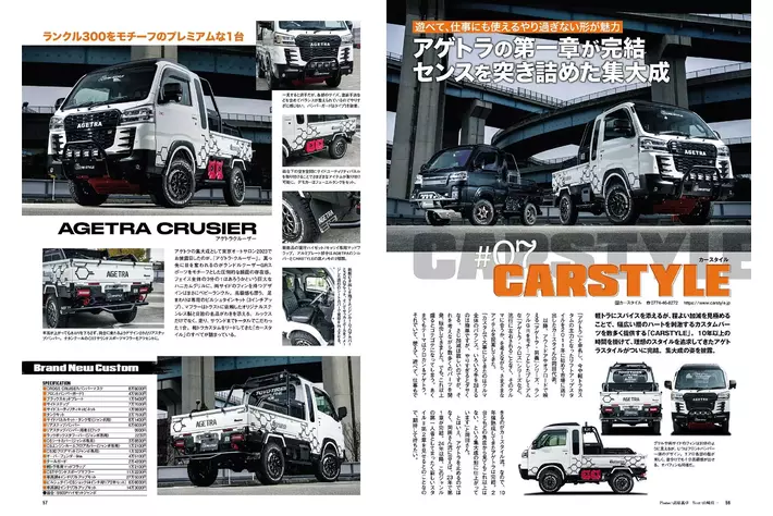 軽トラをあくまでもカッコ良く、スタイリッシュに仕上げてくれるカースタイル(京都府)のアゲトラクルーサー。モチーフはランクル300。