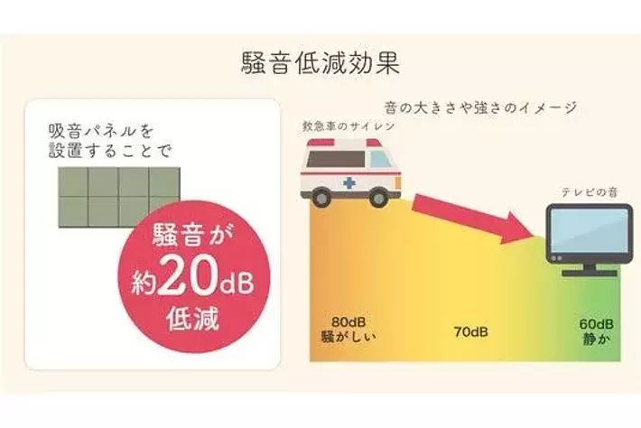 「救急車のサイレンの音」から「テレビの音」までの低減効果に相当