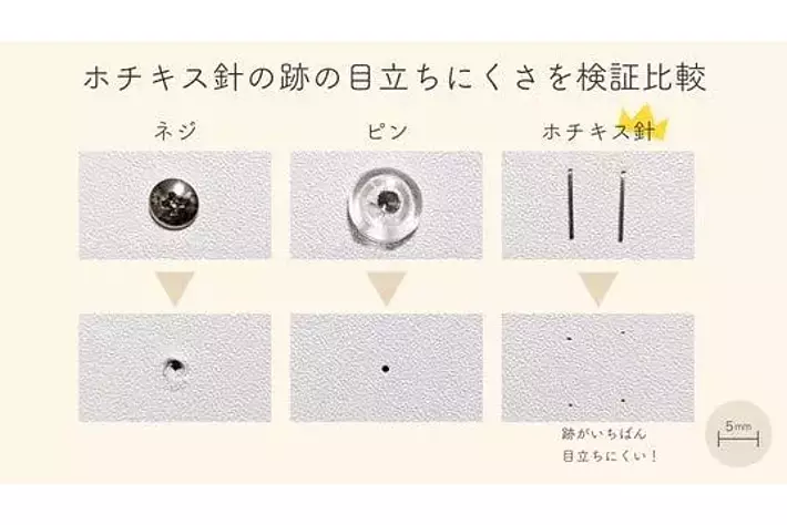 ・スチールプレート留付けで出来る穴はホチキス針使用のため小さく目立ちにくい