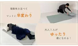 8枚を並べればシングルベッドサイズ(0.9m x 1.8m)で、ゆったり使える