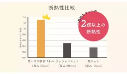 ・厚み30mmのウレタン材を使用、一般的なマットの2倍以上の断熱性
