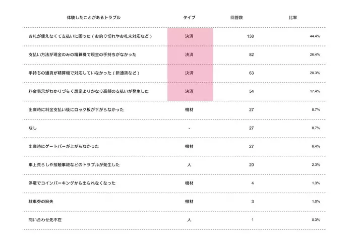 コインパーキングで9割以上の人がトラブルを経験!決済系トラブルがもっとも多い結果に【コインパーキング利用に関するアンケート調査】