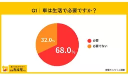 東京都以外に居住する新成人に、車は生活に必要かどうか聞いたところ、「必要」が68.0%、「必要でない」が32.0%という結果となりました。約3人に2人は車を必要としていることがわかります。