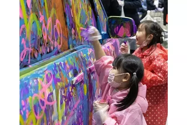 夢中になるお子様続出! 自由にお絵描きペイントカー 今回は2台のセレナにお絵描き。