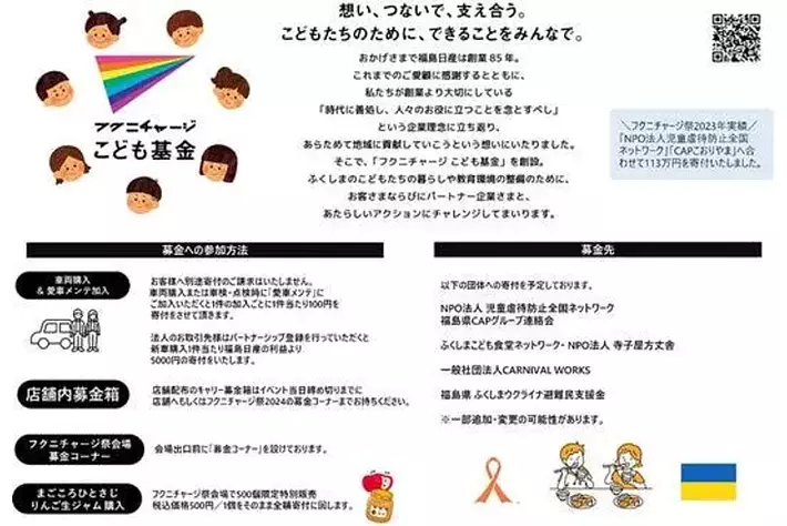 福島日産では、フクニチャージ祭2024を開催する1/13(土)まで実施しているフクニチャージこども基金の寄付先に