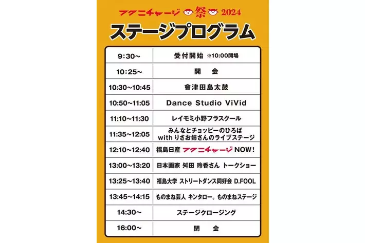 フクニチャージ祭 ステージプログラム&ワークショップ タイムスケジュール