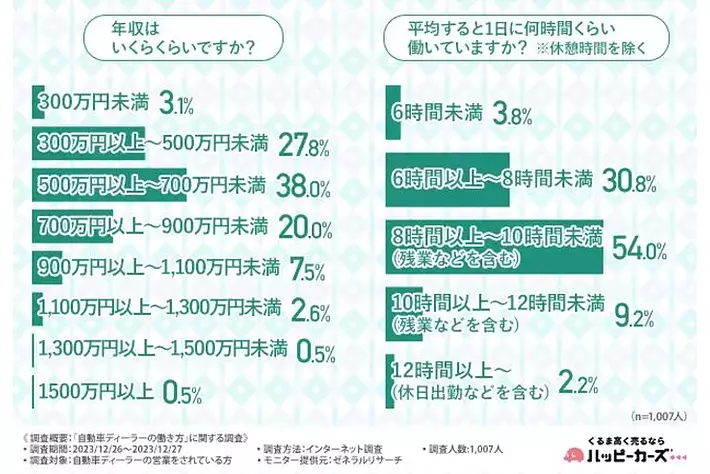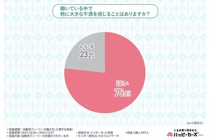 そこで今回、出張中古車買取「ハッピーカーズ(https://happycars.jp/)」を手掛ける株式会社ハッピーカーズは、自動車ディーラーの営業をされている方を対象に「自動車ディーラーの働き方」に関する調査を実施しました。