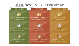 「あなたが最も素敵だと思うRVパーク」を決める『第1回RVパークアワード』の各部門受賞施設のトロフィー展示に加え、受賞施設をご紹介します。
