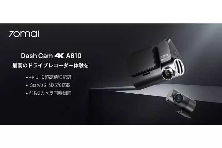 Starvis 2 IMX678搭載、70mai最新・最上位モデル、ついに日本上陸!4KドライブレコーダーDash Cam 4K A810販売開始、発売記念キャンペーンもスタート