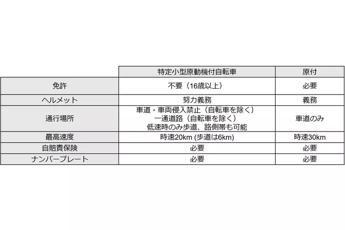 ※特定小型原動機付自転車とは、2022年4月に道路交通法改正案により新しくできた軽車両(自転車)と原付の間の区分。