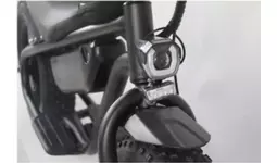 フロントライトを初期装備。クラクションと、最高速度表示灯(緑ランプ)を備え付けています。
