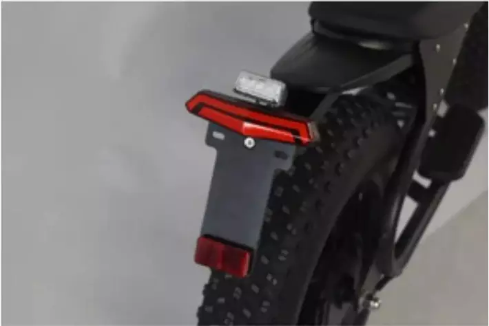 速度表示灯(緑ランプ)とナンバー取り付けプレート、後方反射板を装備。
