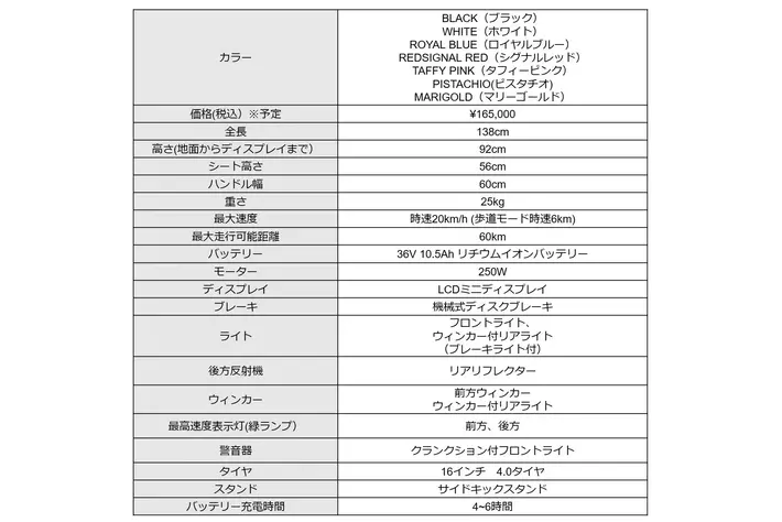 eバイク「WONKEY」スペック