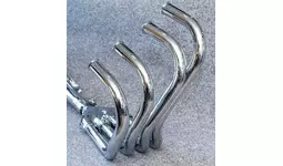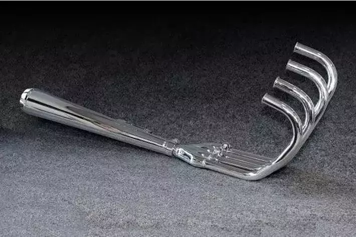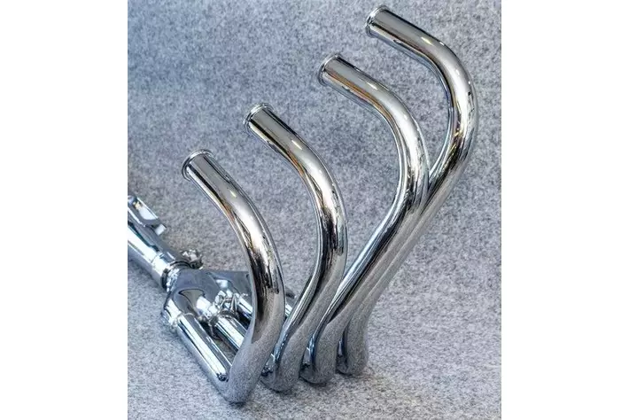 エキゾーストパイプの2重構造マフラーの中でも最も高温になるのがエンジンに最も近いエキゾーストパイプの最初の曲がりの部分です。この部分のメッキに焼け色が付かないように、純正はエキゾーストバイプの約半分ほどが二重管となっていました。