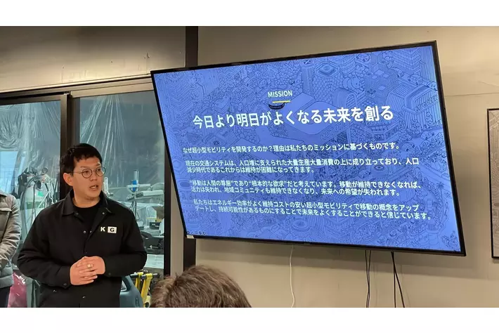 最後に、ミッションビジョンの共有が行われ、今後の人口減少時代においてエネルギー効率が高く、維持コストが安い超小型モビリティの重要性が強調されました。KGモーターズは、超小型モビリティの開発を通じて「今日より明日がよくなる未来」を実現させるべく事業を推進して参ります。