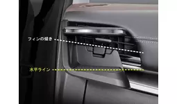 本製品はエアコン吹き出し口に沿うような形状で、壁面にはクルマの内装(樹脂パーツ部)に合わせたシボ加工を施しました。また、ホルダーの天面はドアのスイッチパネル部に合わせたヘアライン処理や各車仕様に合ったメタリックカラーのラインをあしらいました。高級感を意識し、ホルダーを装着しても内装に溶け込むデザインに仕上げました。