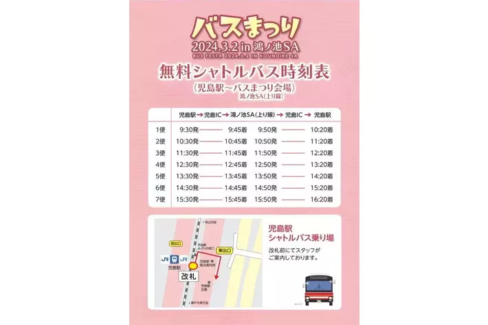 ★イベント当日は児島駅~バスまつり会場(鴻ノ池SA上り)間を無料シャトルバスが運行★