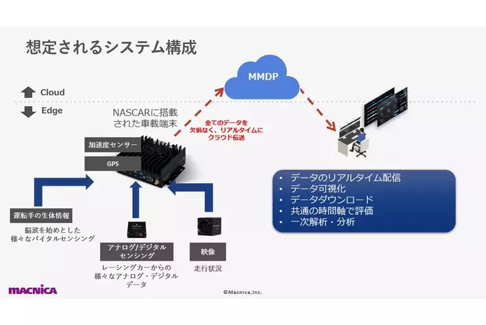 マクニカは、NASCARのスポンサードを通じ、自社の最先端テクノロジーの実証のため、データ収集を行います。オリジナルのフリートマネジメントシステムeverfleet(エバーフリート)を通じ、クラウドベースで収集した各種データを、データプラットフォームであるMacnica Mobility Data Platform(以下MMDP)に同期することを検証します。また、脳波を測定・AI解析するInnerEyeにより、極限状態のドライバーの脳波を含む生体情報を収集し、集中度、ストレス等を分析し、事故防止、快適な走行を可能にする次世代モビリティ開発に活用できるようにします。
