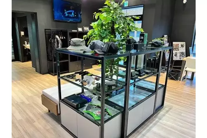 モーターサイクルライフを引き立てるアパレルはアイランドスペースに展示され、手に取って確かめやすいレイアウトになっています。