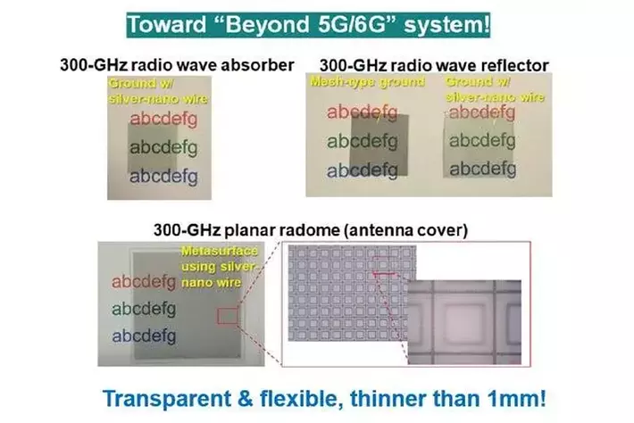Beyond 5G/6G実現に向け、情報通信研究機構採択の「マイクロアクチュエータを用いたテラヘルツ帯コヒーレントトランシーバの開拓」にて開発した電波用機能性シートを展示