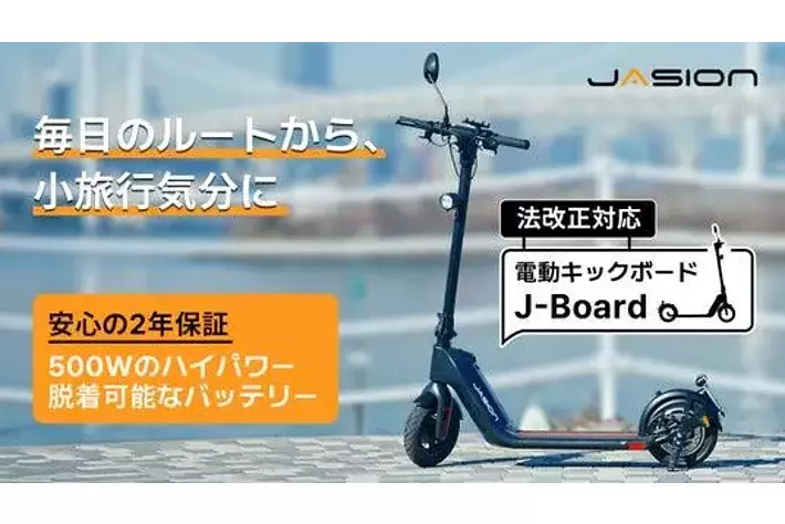 Jasion Japan株式会社(本社:東京都 代表取締役:早藤健二)から電動キックボードJasion J-Boardのリリースを発表。急な坂道(約20度)でも登ることができる500Wのハイパワーモーターを搭載し、脱着可能なバッテリーでコンセントのある場所ならどこでも簡単に充電可能な電動キックボードJasion J-Boardを2024年2月22日(木)から販売開始します。