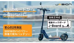 Jasion Japan株式会社(本社:東京都 代表取締役:早藤健二)から電動キックボードJasion J-Boardのリリースを発表。急な坂道(約20度)でも登ることができる500Wのハイパワーモーターを搭載し、脱着可能なバッテリーでコンセントのある場所ならどこでも簡単に充電可能な電動キックボードJasion J-Boardを2024年2月22日(木)から販売開始します。