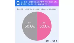 50%の方がレンタカーを借りてフェスや野外イベントに行く際、気を付けていることが「ある」と回答しています。