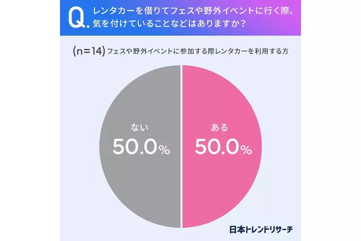 ■50%がレンタカーを借りてフェスや野外イベントに行く際、気を付けていることが「ある」
