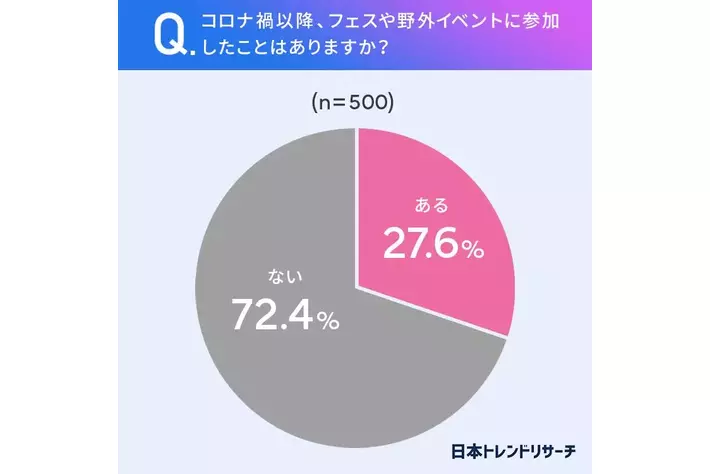 ■27.6%がコロナ禍以降、フェスや野外イベントに参加したことが「ある」