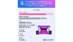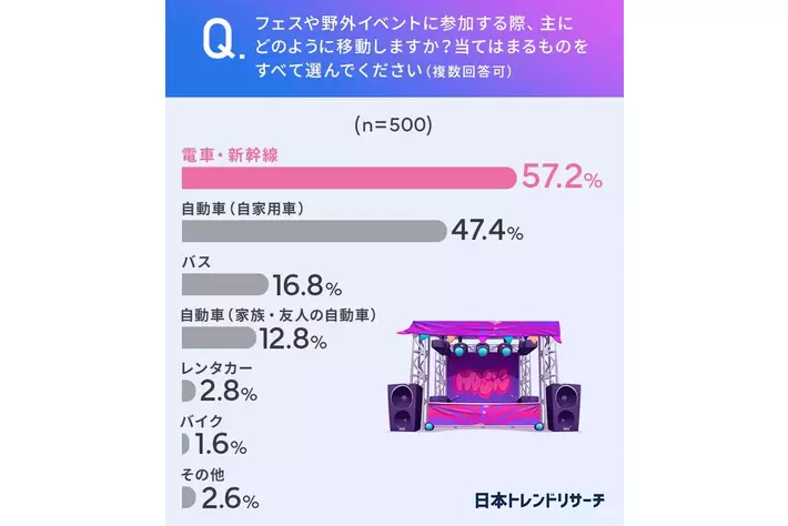 【フェス、どう行く?】57.2%が「電車・新幹線」で、47.4%の「自家用車」を上回る結果に