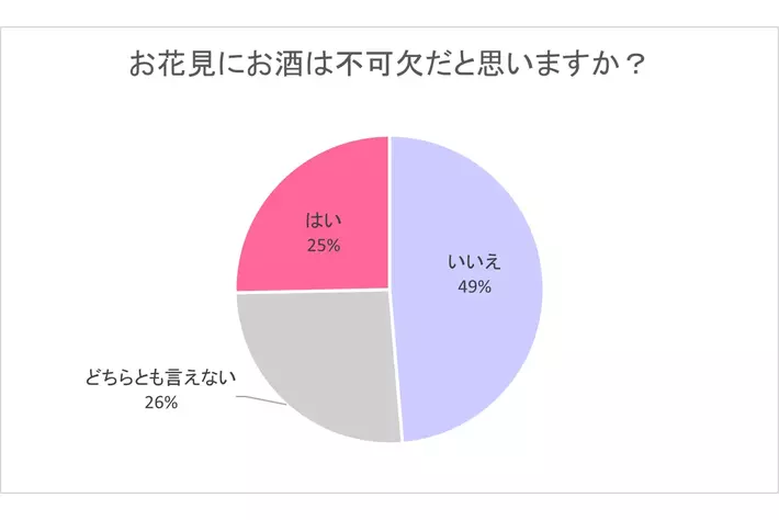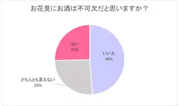 結果として、お花見と料理は切り離せない一方で、お酒はなくてもよい派が多いようです。