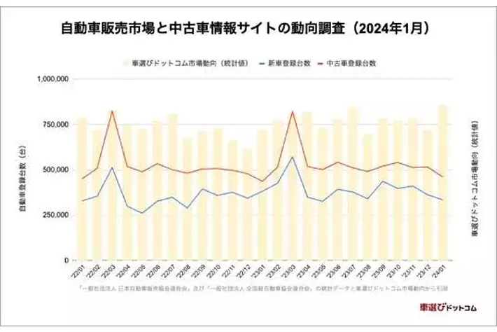 中古車情報サイト「車選びドットコム」の動向(2024年1月)