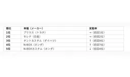 国産車のボディタイプ別ランキングでは、軽自動車が1位となりました。軽自動車はさらに2.8ポイントシェアを広げており、国産車販売全体の1/3を占めています。