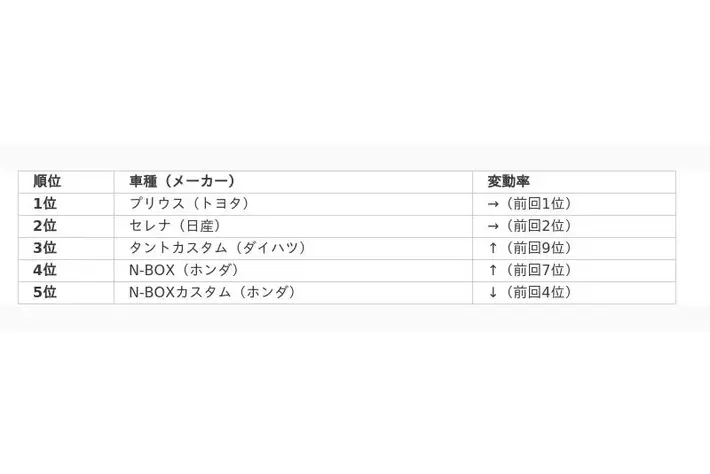 国産車の車種別ランキングではプリウス(トヨタ)が1位となりました。プリウス(トヨタ)とセレナ(日産)は3ヶ月連続でランキング1位、2位をキープしています。今年度初期はランキング中位から下位に沈んでいた車種でしたが、再び上位に戻ってきています。