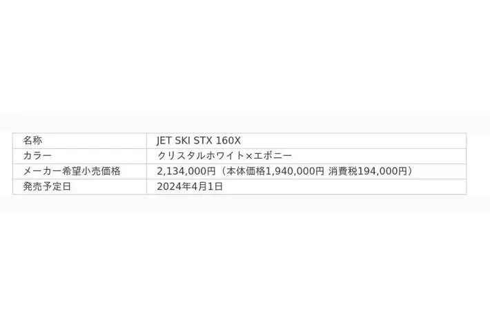 株式会社カワサキモータースジャパン(本社:兵庫県明石市、代表取締役社長:桐野 英子)は、2024年モデル「JET SKI ULTRA 310LX」「JET SKI STX 160シリーズ」「JET SKI SX-R 160」2024年4月1日(月)に発売いたします。また、「JET SKI ULTRA 160LX」はカラーを継続し同日4月1日(月)より販売いたします。