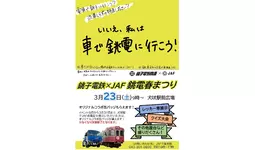 3月23日(土)に犬吠駅前で開催される「銚電春まつり」にJAFブースを出展します。また、当日限定でコラボ特別仕様のヘッドマークを装着した電車が走行しますので、お見逃しの無いようご覧ください。