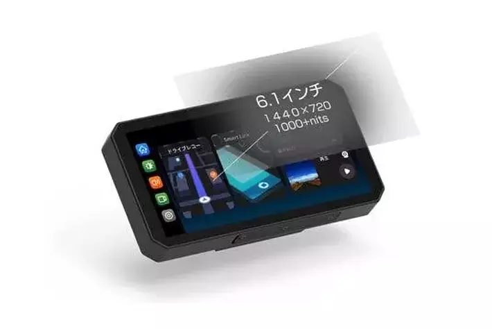バイク専用にカスタマイズされた6.1インチの高解像度大画面パネルで、より広い視野で確認できます。また、表示解像度は1440×720ピクセル、5ミリメートルの狭いベゼルデザインによりさらに画面が見やすくなっています。