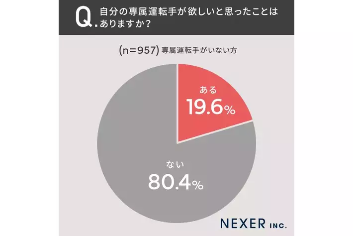 19.6%の方が、自分の専属運転手が欲しいと思ったことが「ある」と回答しています。