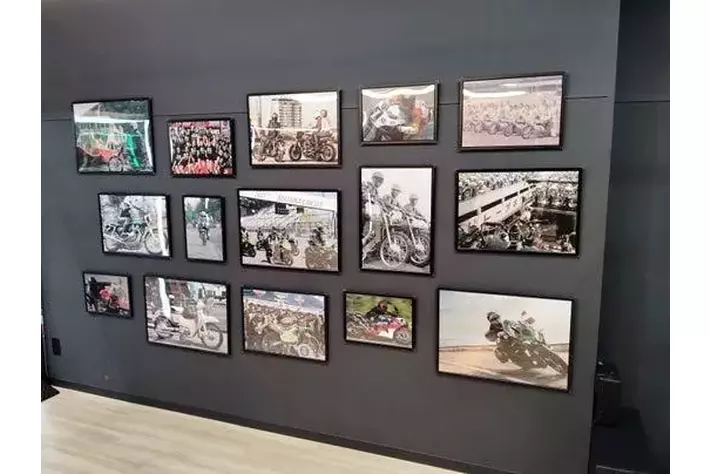 新たなオーナーを待つモーターサイクルたちが、ケージの中で静かに眠りについているイメージを創出しています。