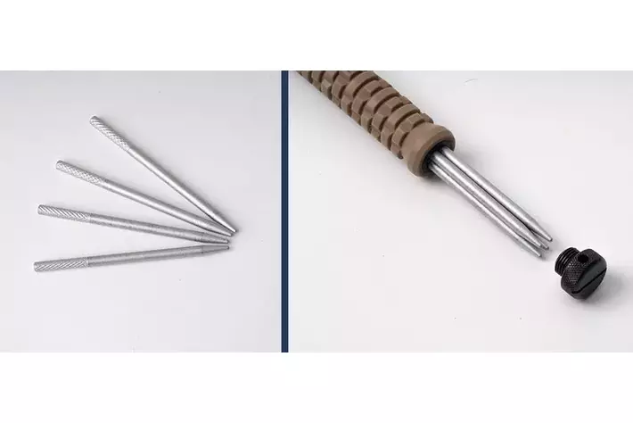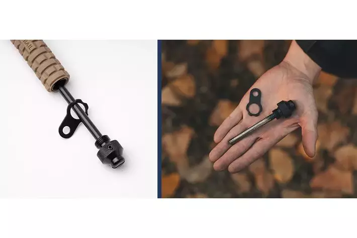グリップエンドはねじ込み式のキャップになっており、ファイヤースターターはキャップに装着済み。