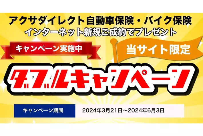 株式会社アスクは、2024年3月21日より「アクサダイレクト自動車保険・バイク保険のインターネット新規 ご成約ダブルキャンペーン」を開始いたしました。