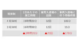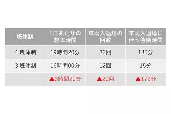 4班体制と3班体制の施工時間比較