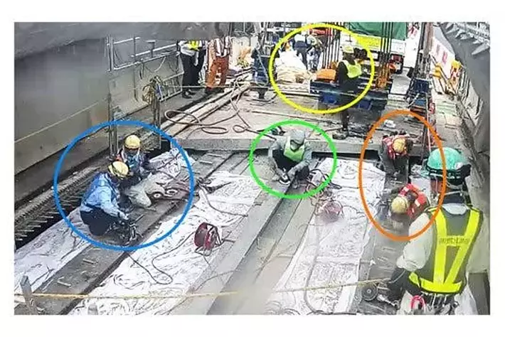 また、改善された施工サイクルを忠実に適用するため、現場ではトヨタ自動車のかんばん方式を参考に、作業員に色付きビブスを着用して工事にあたってもらいました。色別により誰がどこで何の作業をするかを相互に明確にし、より効率的な施工サイクルを実現しました。