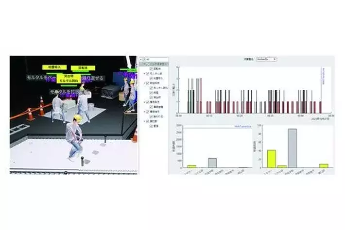 作業員の行動を記録・分析し、理論上最適な施工サイクルを算出し、提案する機能