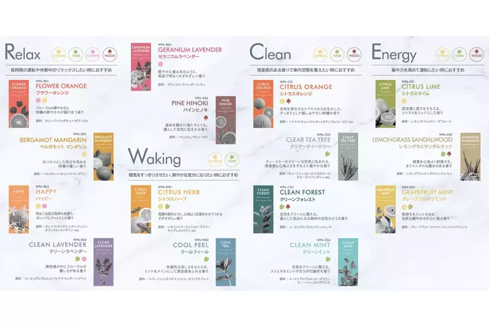 運転シーンを想定した4タイプ15種類の香りのセレクト