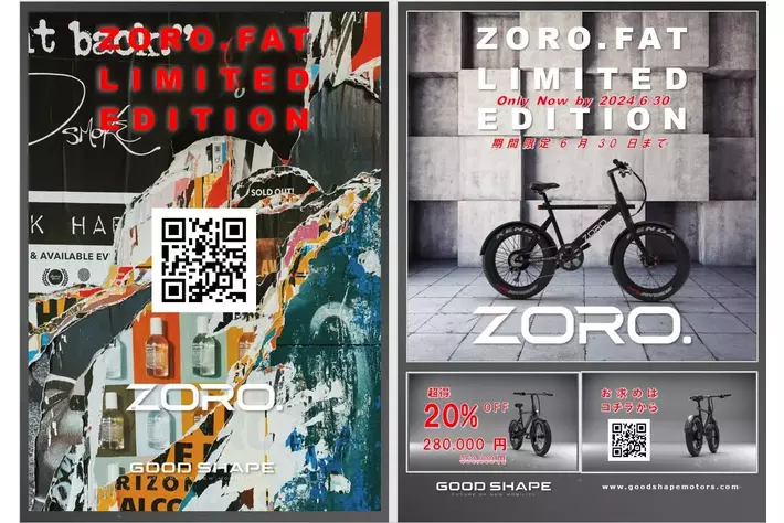 グッドシェイプ及び販売提携ショップは「ZORO.」の新ラインアップ発表を記念して、2024年4月6日から2024年6月30日までの期間、特別装備と特別デザインのZORO.FAT限定モデル「ZORO.FAT Limited Edition」を限定販売します。